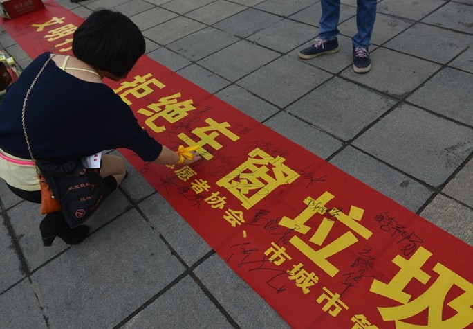 清明:環(huán)保袋和五大連池礦泉水送給祭祖市民